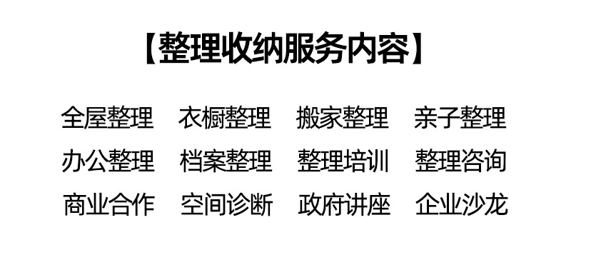 整理收纳服务的具体内容包括但不限于以下几个方面: