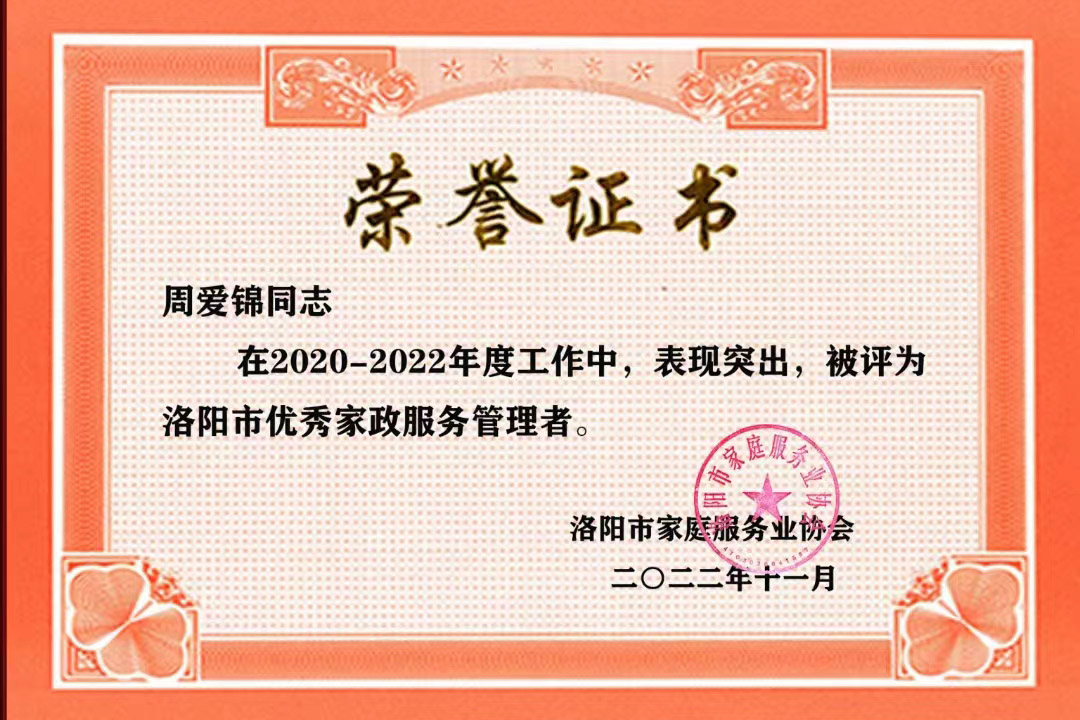 祝贺获得洛阳市家政服务诚信经营先进单位